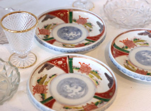 赤と藍がつくる上品な華やぎ✨大聖寺伊万里の色絵 花鳥文 小皿が入荷しました!