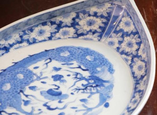 伊万里焼染付舟形皿が入荷しました❣️御徒町駅から徒歩10分🚶神保町古本屋街、合羽橋道具街から車で10分🚗東京の骨董店・新原美術です✨
