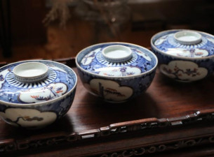 古伊万里の魅力を味わう、染付松竹梅文の蓋茶碗が新入荷しました❗️