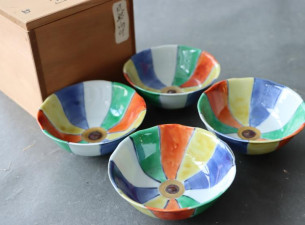 九谷焼 須田菁華 色絵 風船文 向付 四客組(共箱)入荷しました!